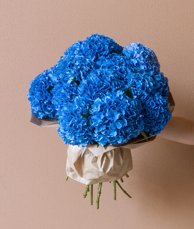 Elegant and enchanting, Azure Bloom is a captivating bouquet of rich blue hydrangeas that evokes the calm of clear skies and the depth of the sea. Each voluminous bloom is carefully selected for its vivid hue and graceful form, creating a stunning display of natural beauty and serenity. Perfect for thoughtful gifting or refined décor, Azure Bloom speaks the language of peace, elegance, and quiet sophistication — a true floral escape wrapped in tranquil blue.