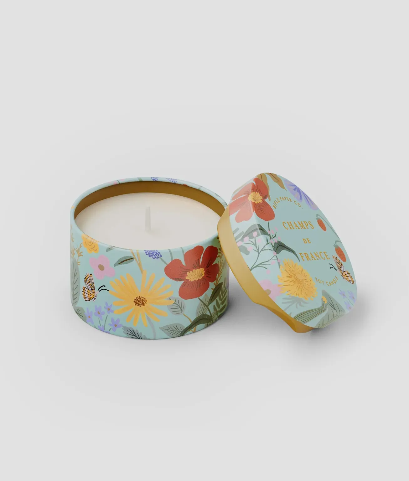 Champs de France transports you to the rolling lavender hills and herb-filled markets of the South of France for a scent that is calming, invigorating, and earthy. The 3oz soy wax candle comes in an illustrated tin vessel with a matching lid.