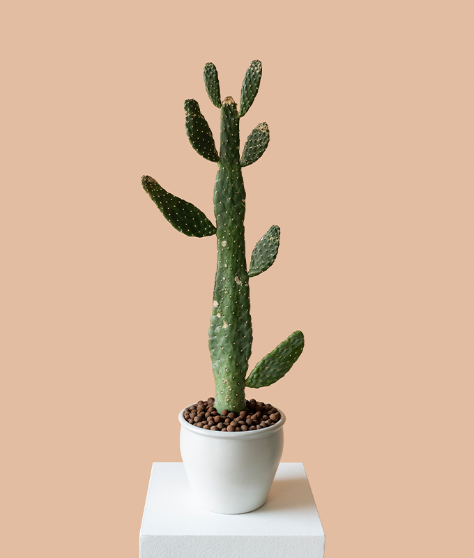The Opuntia cactus, also known as the prickly pear, showcases its iconic paddle-shaped stems and desert beauty. A resilient and striking addition to any space, perfect for adding a touch of nature’s charm to your décor.