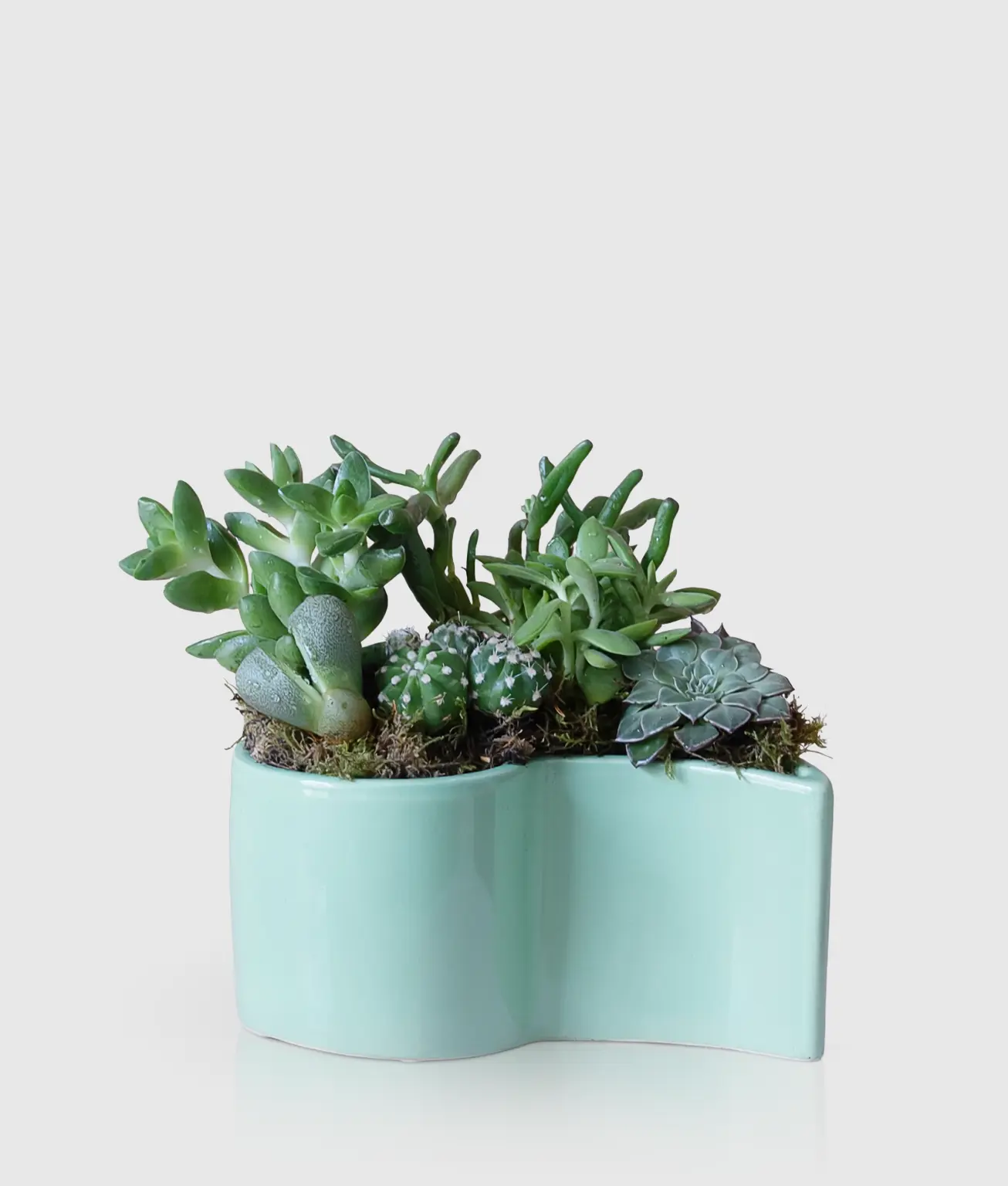 Gilded Green features a lush medley of hand-selected succulent plants, artfully arranged in a sleek, deep green pot with a modern silhouette. Each plant adds its own texture and tone, creating a harmonious blend of earthy charm and contemporary style. Perfect for desks, shelves, or gifting moments that call for something enduring and beautiful. Low-maintenance, high impact—this is greenery at its most graceful.