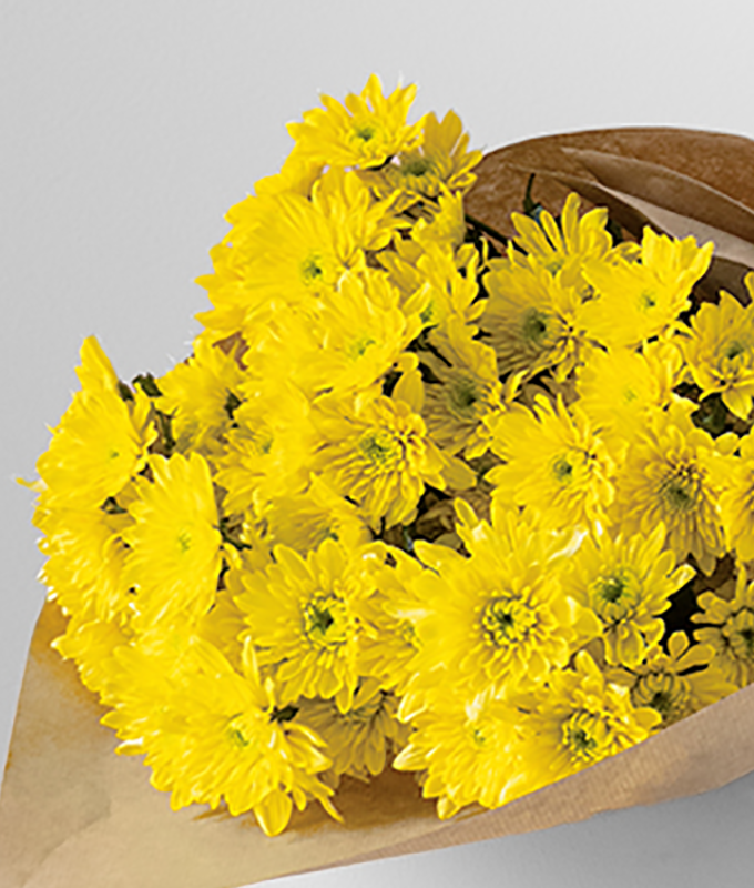 A vibrant bouquet of yellow chrysanthemums, hand-arranged to create a burst of sunshine and warmth. Wrapped in premium wrapping paper and finished with a ribbon, “Golden Radiance” brings a cheerful and uplifting touch to any occasion.