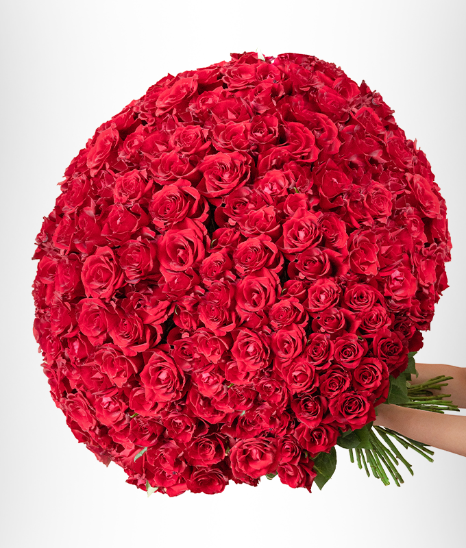 This bouquet features a mix of 300 Premium Red Roses.