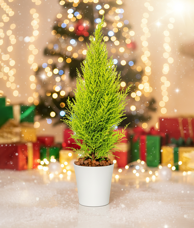 Jolly Green is a cheerful celebration of the season, featuring a fresh Cupressus plant with rich, evergreen foliage that instantly brings Christmas spirit into any space