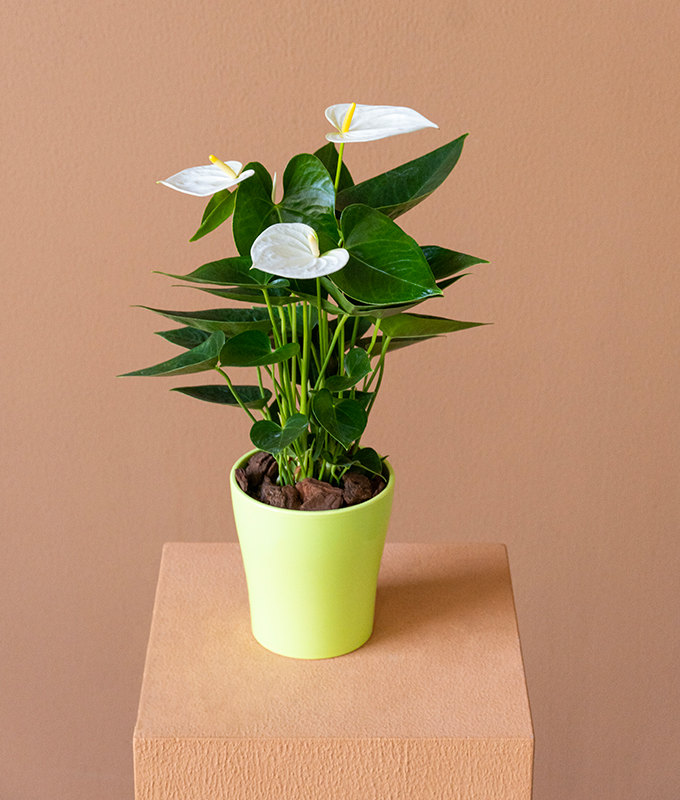 Nature’s Pallet is a stunning plant arrangement featuring the bold, elegant anthurium, Set in a vibrant green ceramic pot, this thoughtful display radiates love and appreciation.