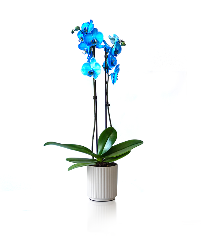 Dive into serenity with Ocean Whisper, an exquisite blue Phalaenopsis orchid, gracefully housed in a sleek green ceramic pot. Its delicate, ethereal blooms evoke the calm and mystery of the ocean, bringing a touch of elegance and tranquility to any space. Perfect as a thoughtful gift or a sophisticated accent for your home or office, Ocean Whisper transforms any corner into a peaceful sanctuary.