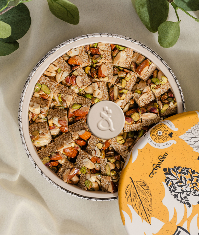 Classic sesame malaki blended with a mix of nuts for a rich crunchy treat.