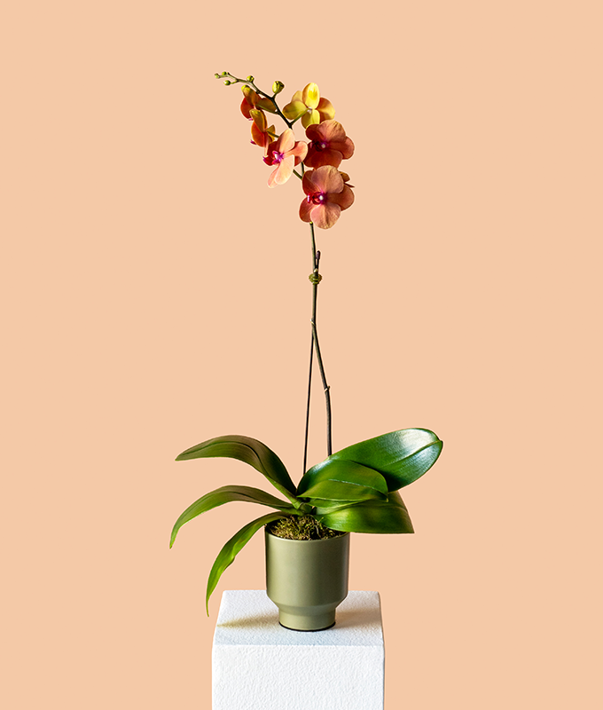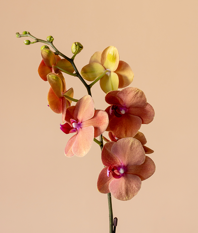 Illuminate your space with Warm Radiance, a stunning Salmon colored Phalaenopsis orchid that embodies joy, energy, and optimism.