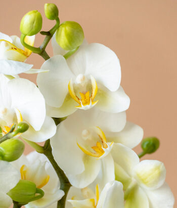 The White Delight features elegant, snow-white blooms that radiate sophistication and charm. Known scientifically as Dendrobium Apollon, this graceful orchid is perfect for brightening up any space. Planted in a ceramic pot, it makes an excellent gift or a stunning addition to your home décor.