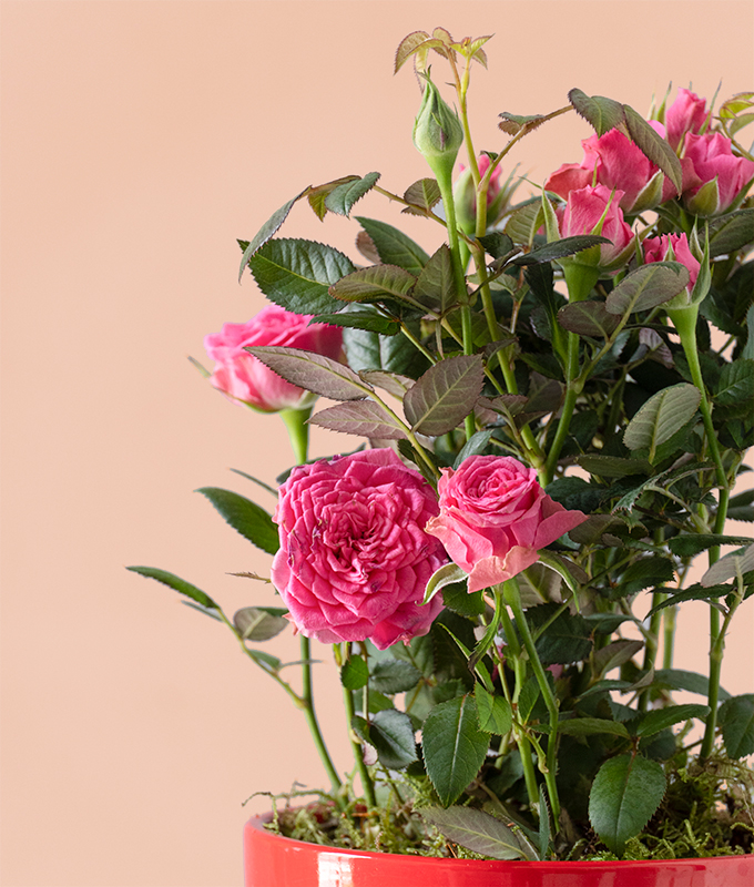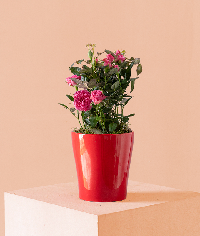 This charming rose plant, with its delicate pink blooms and lush green foliage, is potted in a vibrant red ceramic pot. “Blooming Love” is the perfect gift to symbolize affection, warmth, and care, making it a timeless addition to any home or office space.