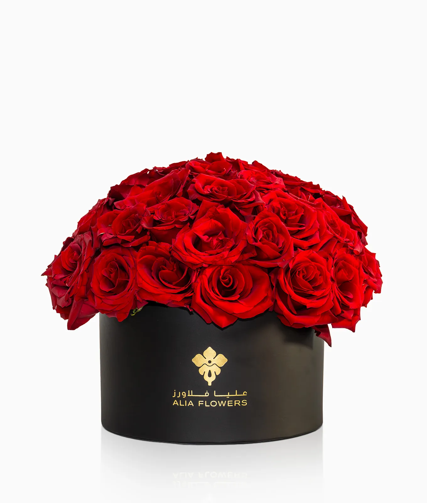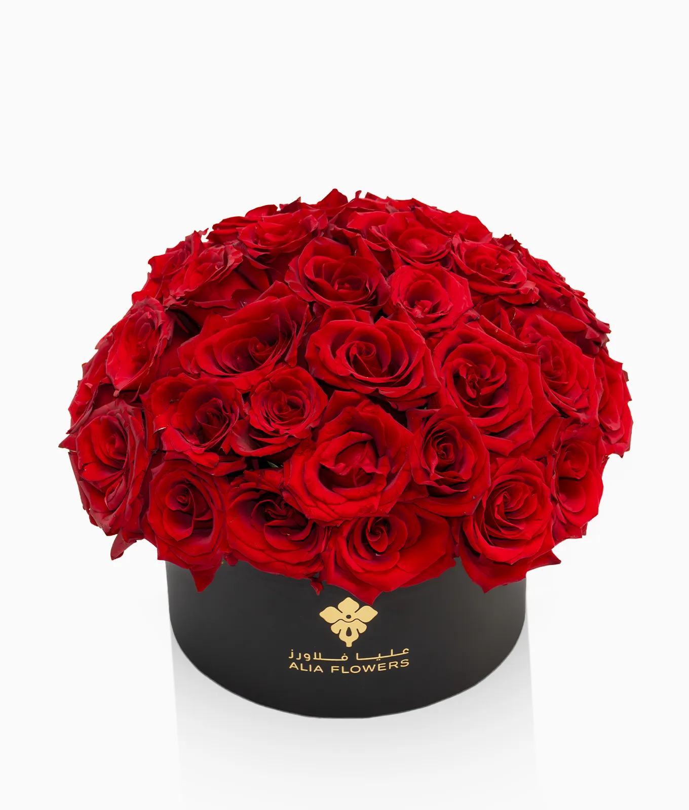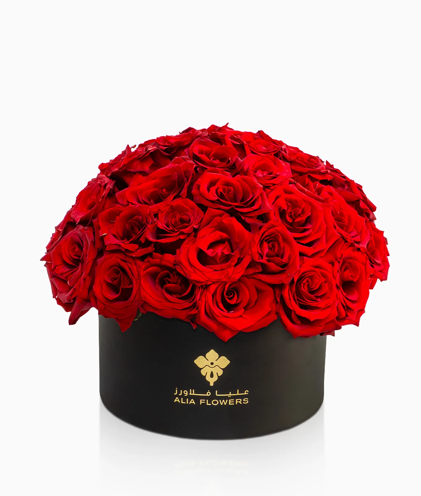 Express your deepest emotions with Endless Love, a breathtaking luxury red rose arrangement featuring 45 premium roses. This stunning round flower box is designed to symbolize an unbreakable bond, making it the ultimate choice for a Valentine’s Day gift or a romantic anniversary surprise. The deep crimson petals are densely packed to create a lush, dome-shaped silhouette that radiates elegance and passion from every angle.